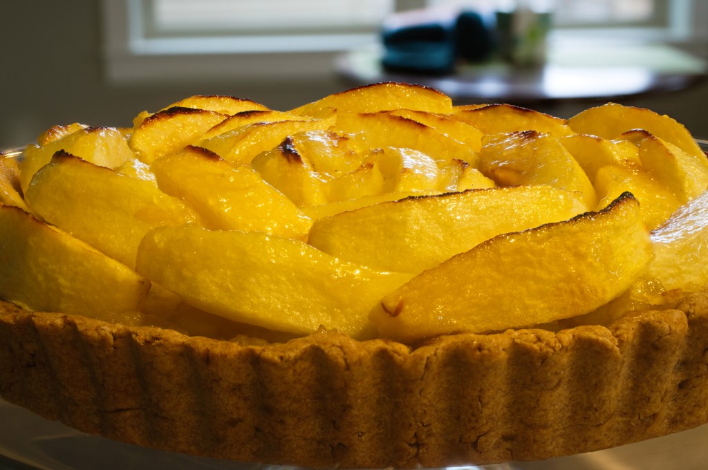 Once your pastry shell is cooked, remove it from the oven, add the puree to the shell. Top with the
